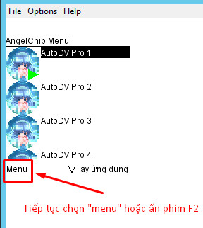 Bước 4: Chọn “Menu” hoặc ấn phím F2