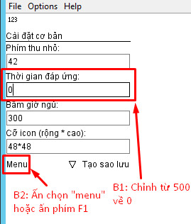 Bước 6: Chỉnh sửa “Thời gian đáp ứng” từ 500 thành 0 , sau đó ấn vào “menu” hoặc ấn F1