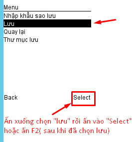 Bước 7: Ấn xuống chọn “Lưu” rồi ấn “Select” hoặc phím F2