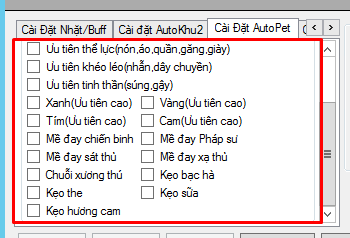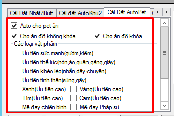 – Bạn có thể cài đóng rớt NL Mề đay, Tinh tú, lửa tinh tú… chỉ cần cài 1 lần vào game sẽ ko nhặt nữa