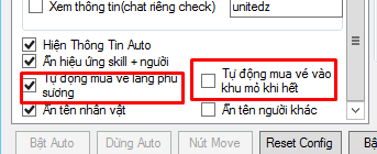 + Up làng phủ sương : Auto mua vé + Tự dùng vé vào làng phủ sương, goback qua lại khi chết( Auto 100%)