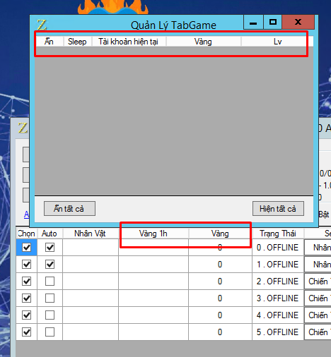 + Quản lý được tên nhân vật, level, số vàng up được 1h, số vàng tổng,…