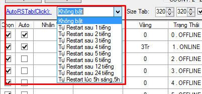 Chức năng độc quyền bên mình phát triển cho rất nhiều game , tự Restart tab game , sau đó tool sẽ tự mở lại và auto lại